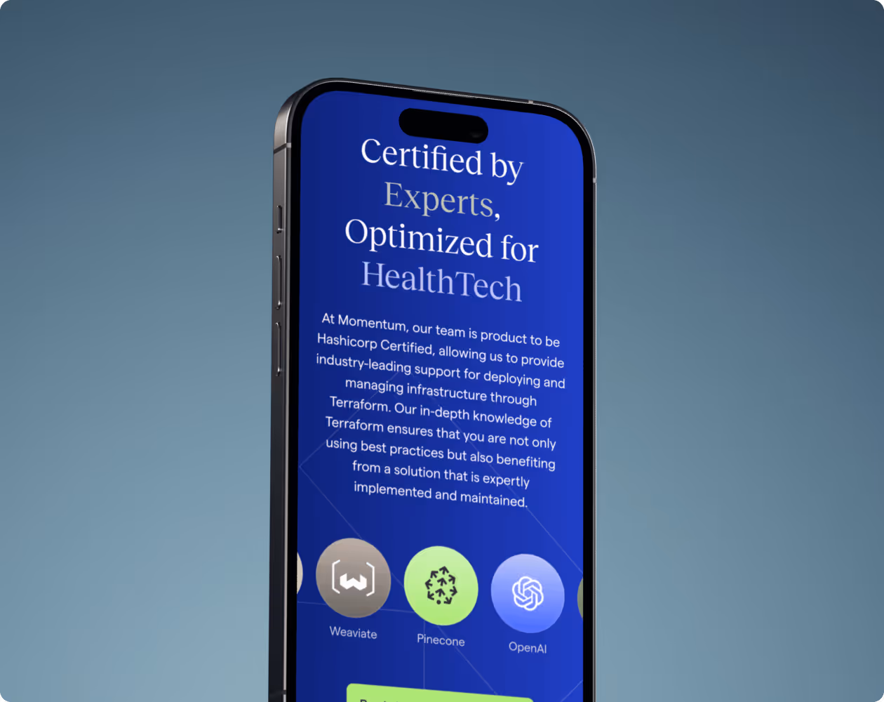 As part of their shift into the MedTech space, Momentum was launching a new brand and website to match. With Figma designs in place, they needed a Webflow team who could jump in fast and handle the development with care.